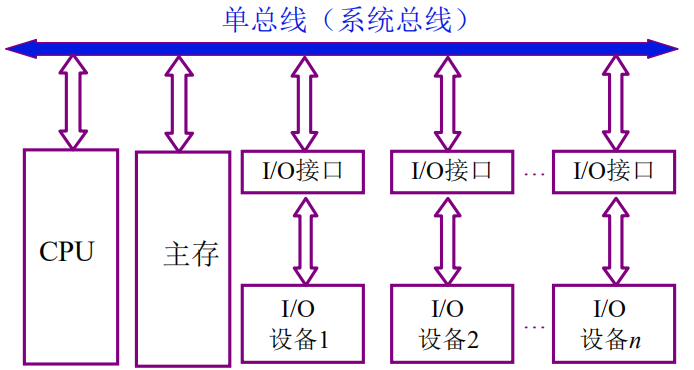 在许多单处理器的计算机中,使用一条单一的系统总线来连接CPU、主存和I/O设备。单总线结构下,总线承担的数据量非常的大,总线成为系统的瓶颈。
