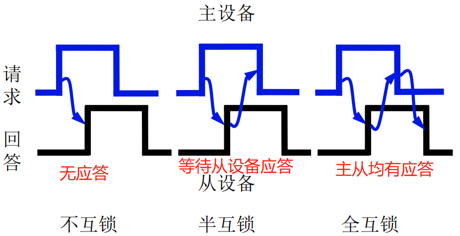 异步通讯有非互锁、半互锁、和全互锁三种方式