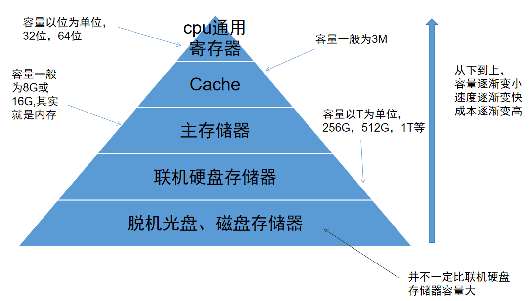 存储系统是分级的,分级是为了保持容量,速度和成本之间的平衡。