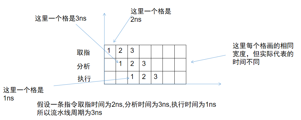 因为一条指令执行有三个步骤,每个步骤的时间不同,用时最长的步骤,所用的时间为一条指令的流水线周期