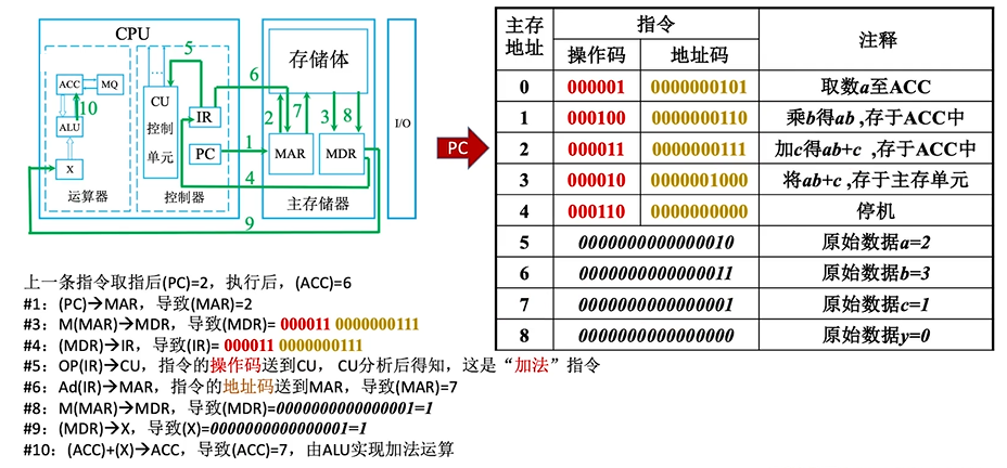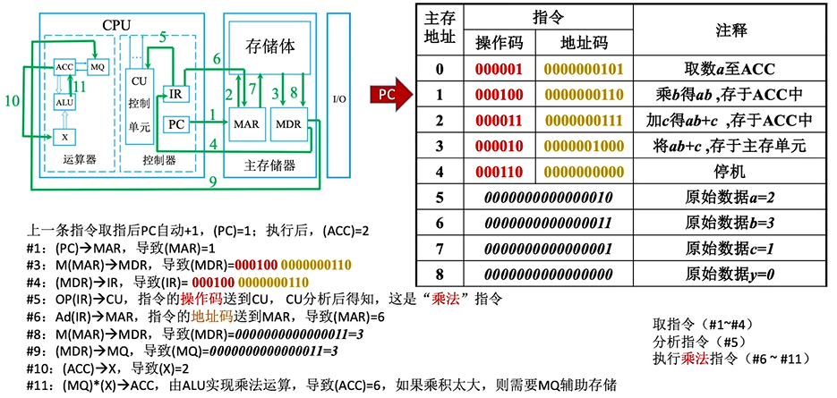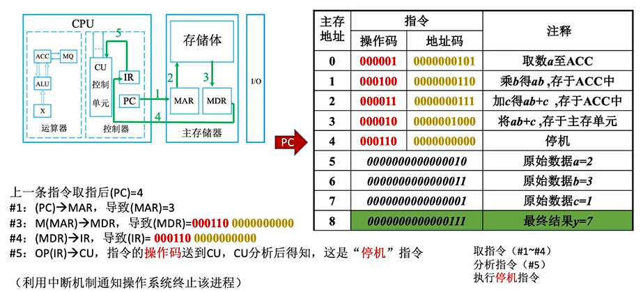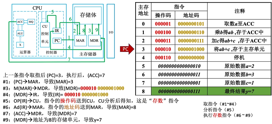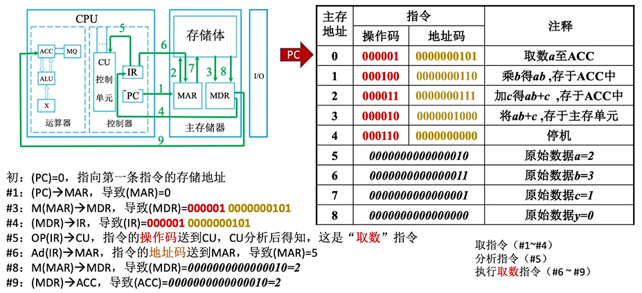 完成一条指令:取指令(PC) + 分析指令(IR) + 执行指令(CU)