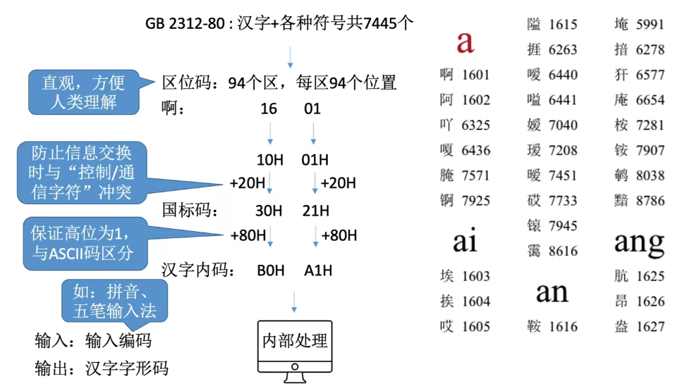 汉字的表示和编码: