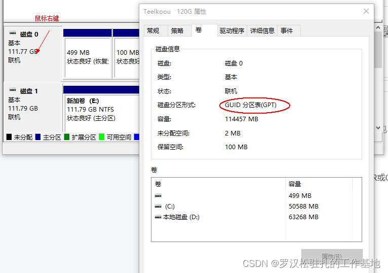 3,然后查看你的磁盘分区类型(MBR或Gpt) 和 文件系统类型(NTFS或FA)