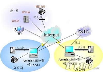 企业在总部和分支机构各放置IPPBX,企业内部人员可以使用IP电话或是普通模拟电话连接到不同的IPPBX上。对于经常出差的商务人士,可以使用SIP的软件电话,通过笔记本实现移动通话。