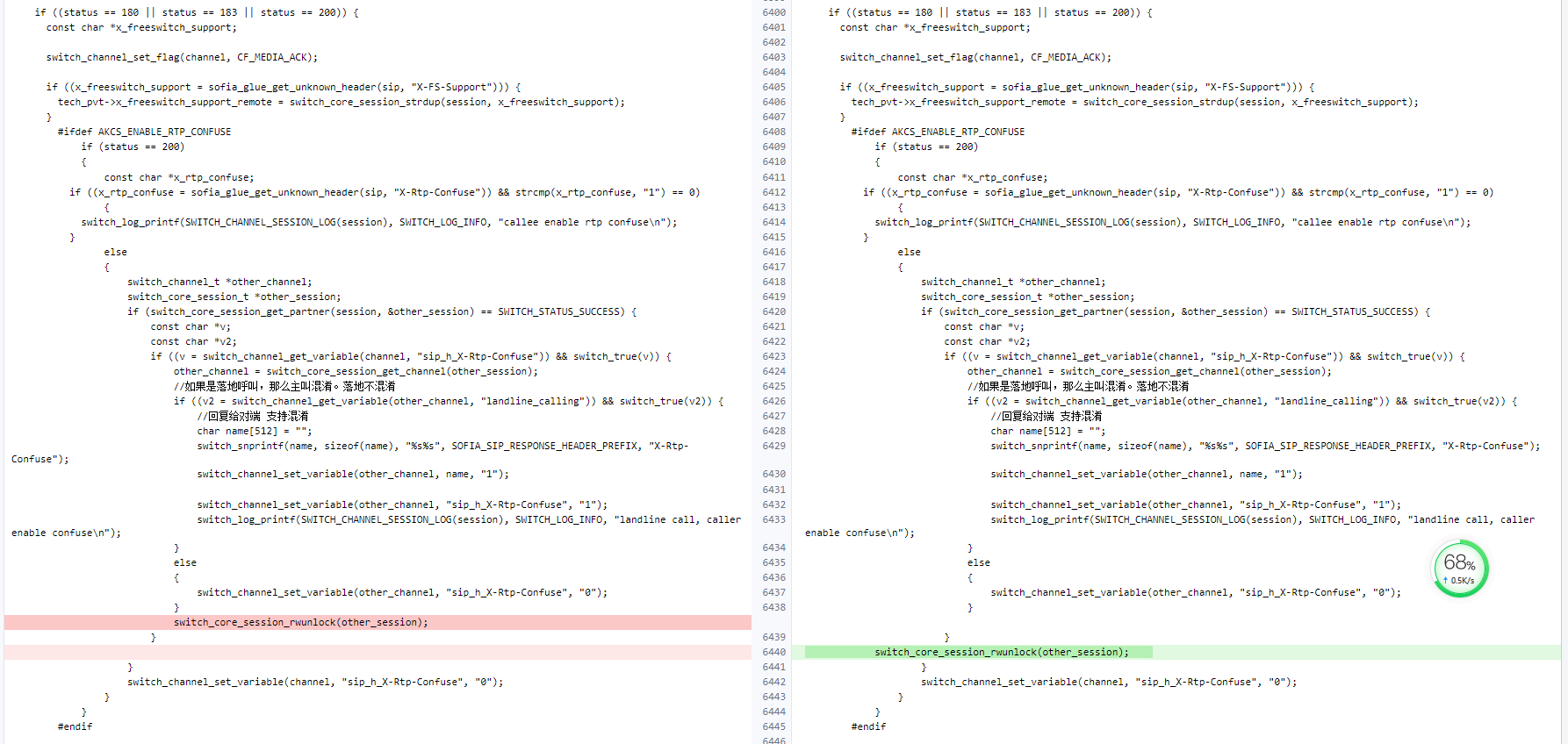 正常通话是没有走RTP-CONFUSE分支的,所以左边的代码没有走到switch_core_session_rwunlock,导致other_session没有被释放,最终导致内存泄漏。