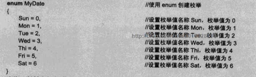 枚举类型:默认第一个枚举值为0,之后递增1;