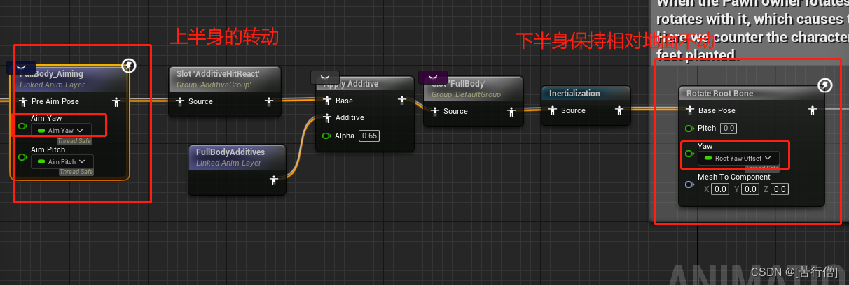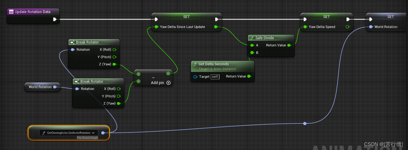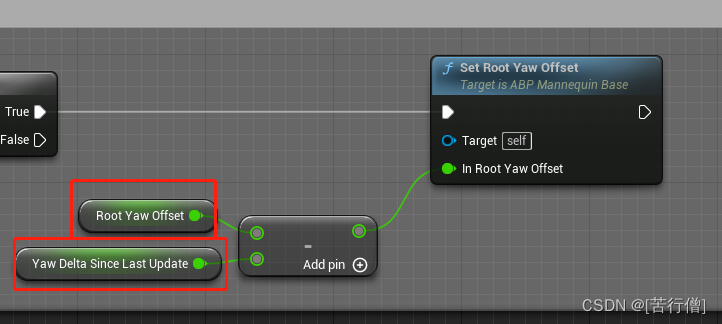 逻辑是:每一帧都计算出和上一帧得旋转值YawDeltaSinceLastUpdate,然后RootYawOffset都会减去这个值得到当前正确的旋转角度。