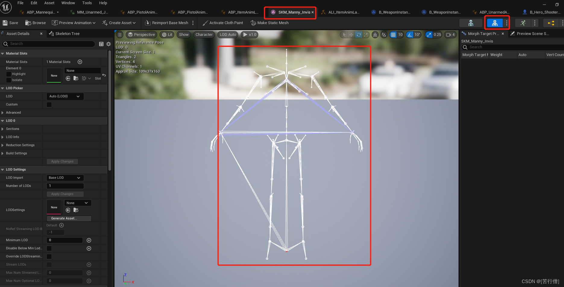基础角色用了一个没有mesh只有骨架的 mesh,