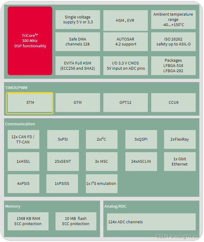 4核;300MHz;1.5M的集成RAM;功耗小于2W;12x CAN FD;DMA;CAN FD; 5v或3.3V供电;165都结温;
