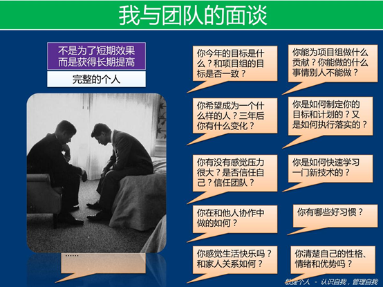 要让团队成员成为敏捷个人,则需要激发大家对成功的追求,因为只有对自己的成长要求之后,大家才会积极主动的去追寻成长的道路。