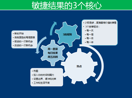 敏捷结果是一个敏捷个人的由一系列的单一练习组成一个提高绩效的最佳实践,每个练习都会有一个知识点让大家来实践练习,下图是其中的一些知识点。