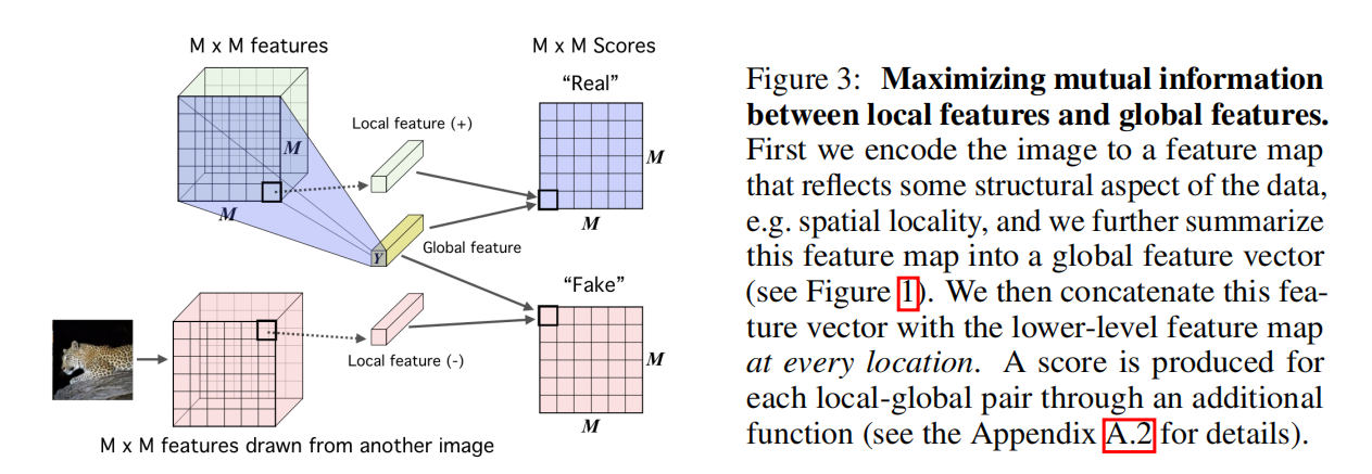 主要使用最大化互信息的思想,同一张图的局部特征和全局特征应高度相关,另一张的局部特征不相关。采用NCEloss得到score
