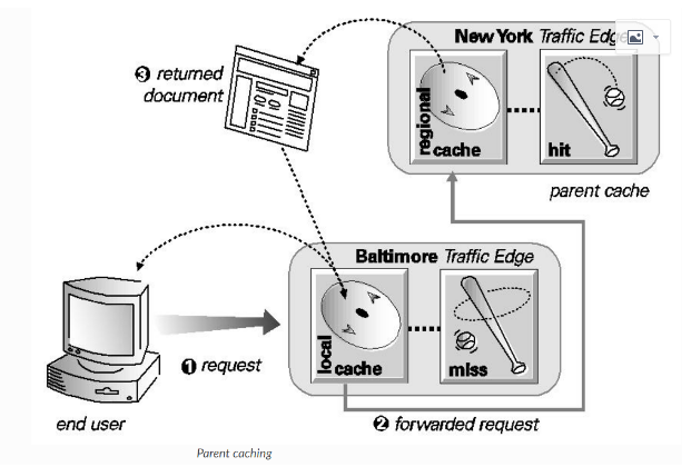 如果请求是父级的缓存未命中,则父级将从源服务器(或从另一个缓存中检索内容,具体取决于父