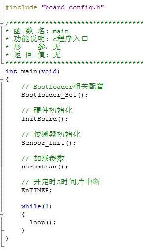 非常简单,上电进行各种初始化,然后大循环,循环执行任务调度。