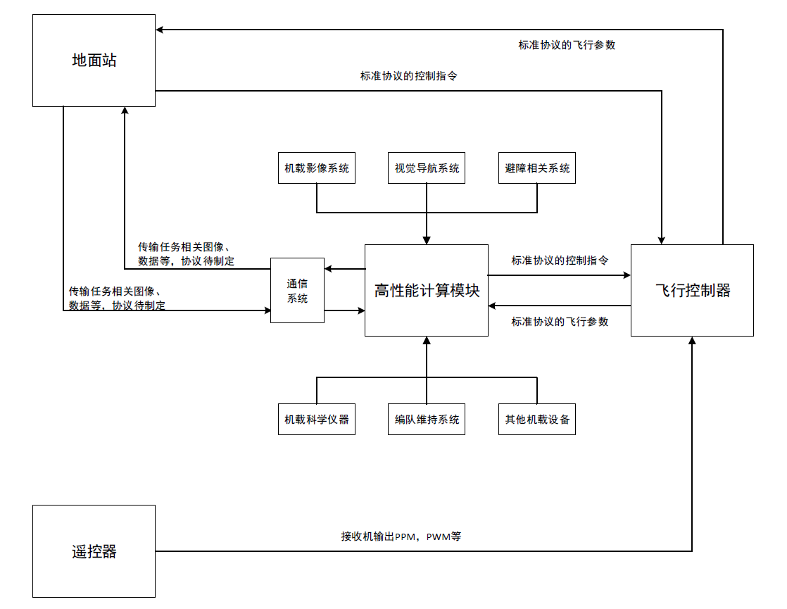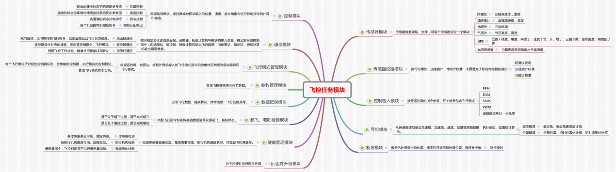 当设计一个商业飞控的软件时,就不仅仅是让飞机飞起来那么简单了,也就是说软件模块除了基本要素外,还需有其他扩展,如下图所示。