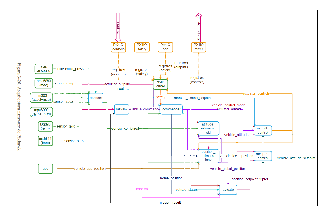 以pixhawk飞控的原生固件为例,如下图所示。这图是很早期的代码记录下来的,与最新的代码相比,有些误差,不过差不多,能解释问题,所以笔者懒得更新,重新画图了。
