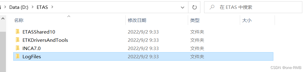 3、然后我就发现了问题,ETAS文件夹里面只有LogFiles,这个文件夹里面也只有一个文件,EtasGeneral90.log