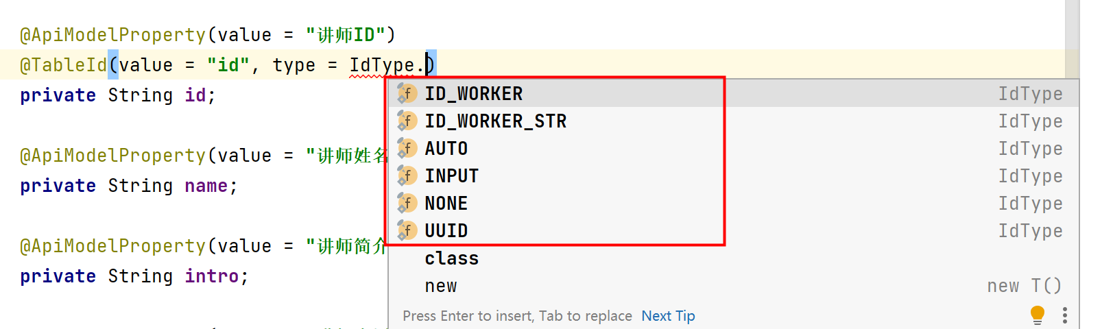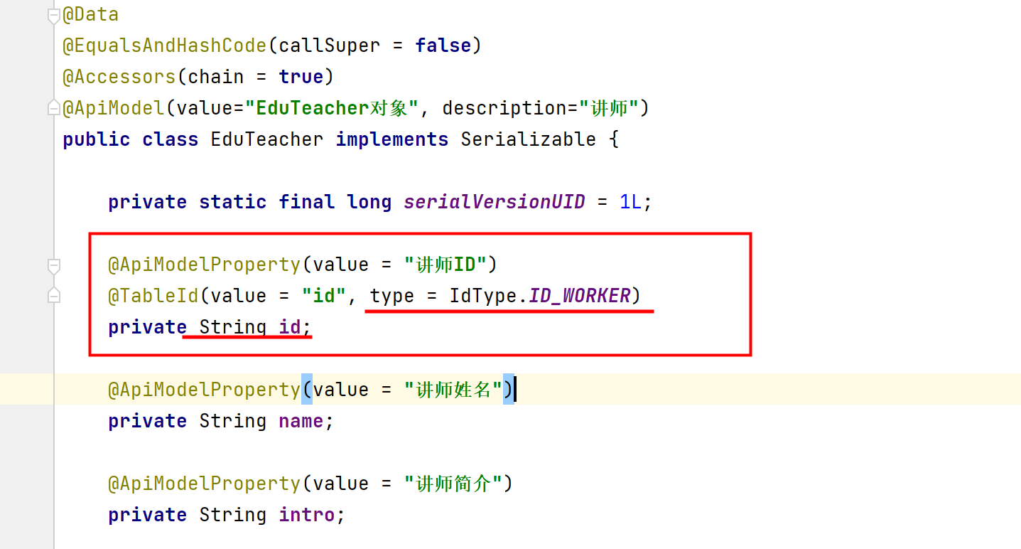 完整的报错为:"nested exception is org.apache.ibatis.reflection.ReflectionException: Could not set property 'id' of 'class com.ldy.eduservice.entity.EduTeacher' with value '1450640362735951873' Cause: java.lang.IllegalArgumentException: argument type mismatch",