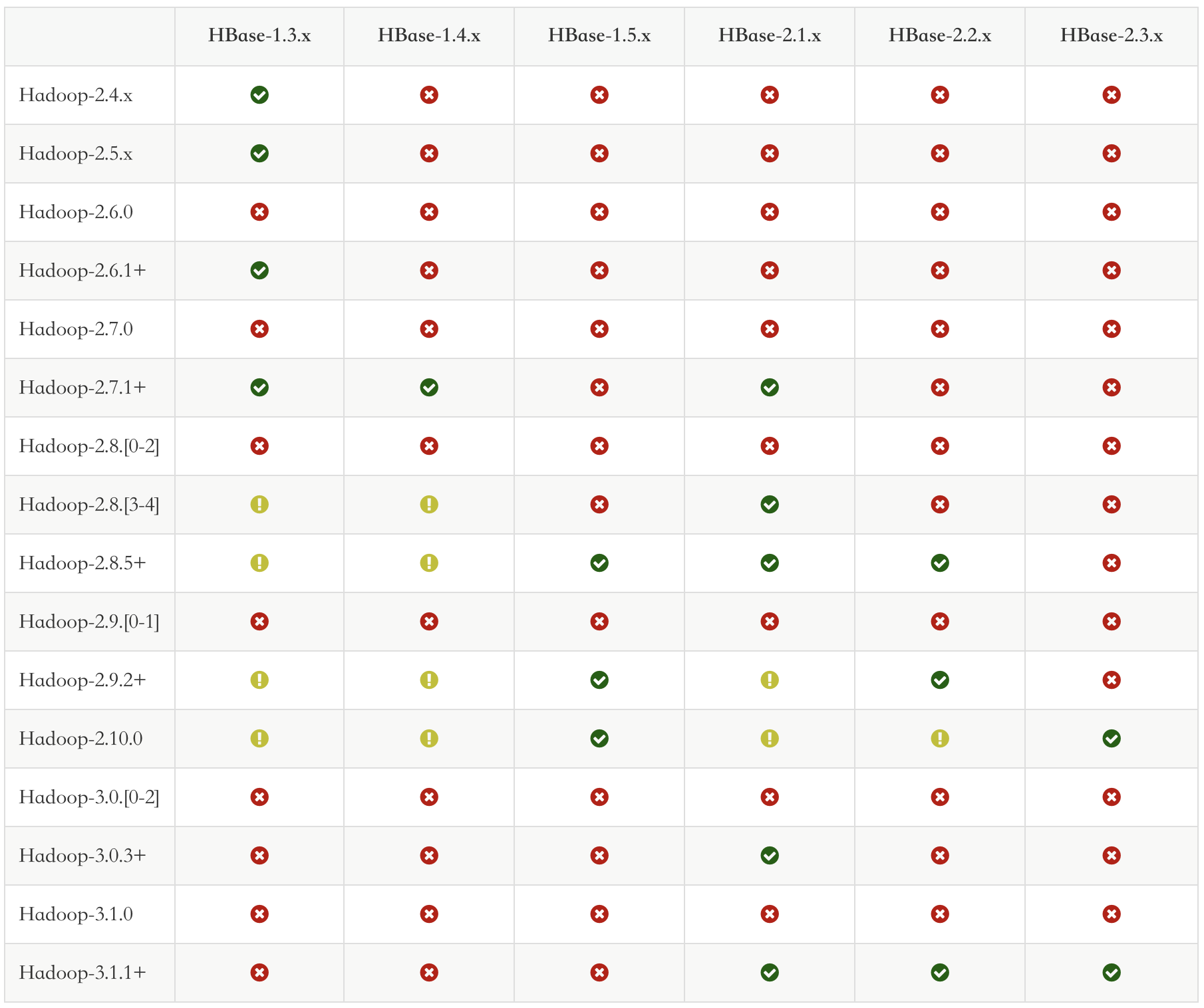 以上就是俭朴镜子最近收集整理的关于Hadoop与Hbase 版本兼容(官网)的全部内容,更多相关Hadoop与Hbase内容请搜索靠谱客的其他文章。