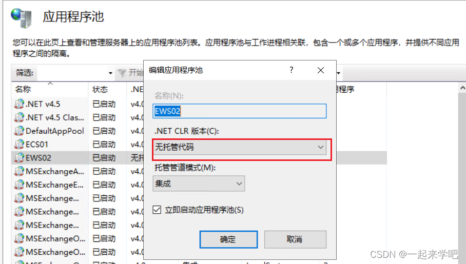 应用程序池设置为“无托管代码”