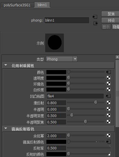 2、给模型添加blinn材质球,参考图片设置为模型添加漫反射贴图、凹凸贴图和高光贴图;