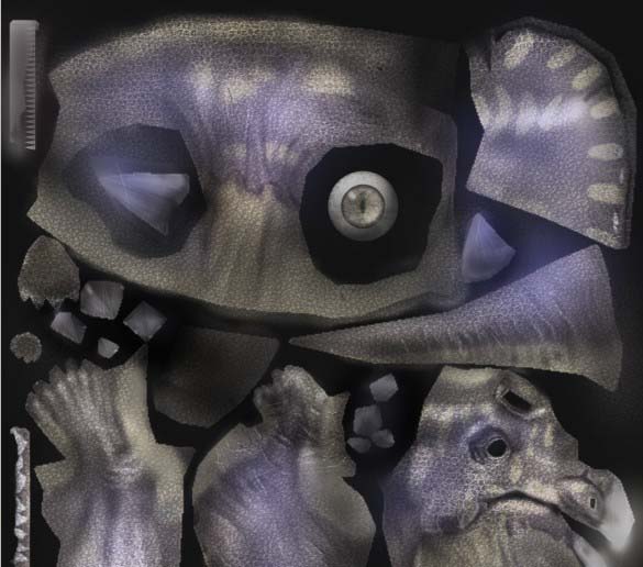 3、漫反射贴图以真实恐龙皮肤基础,在Ps中进行调整和修改合成。这一步需要耐心,慢慢调整才能得到接近真实的效果