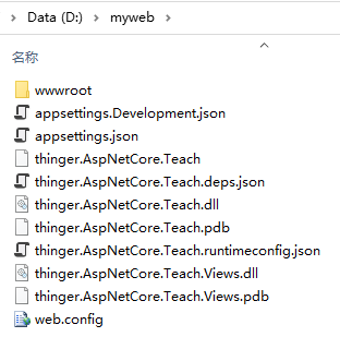 这时候我们打开D盘的myweb文件夹可以看到发布的文件如下: