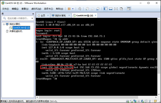 记住当前Linux操作系统所在的电脑IP地址是192.168.73.129,一会儿我们要用到。