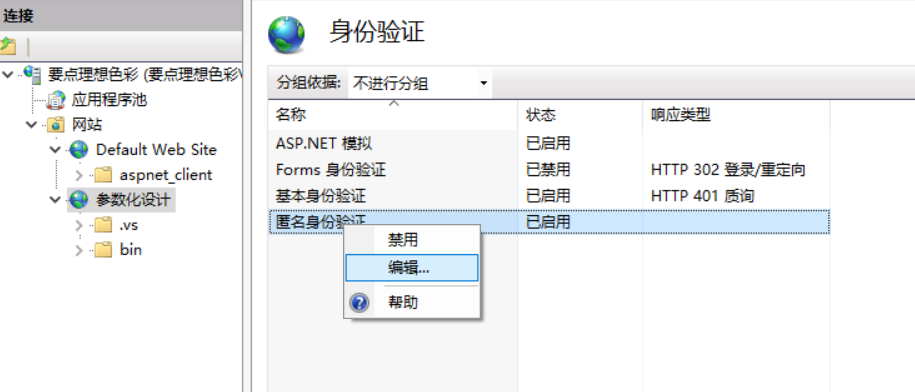 是由于权限问题所导致的,我们需要在IIS里面设置,找到自己的网站,然后再身份验证里面选择匿名身份验证,