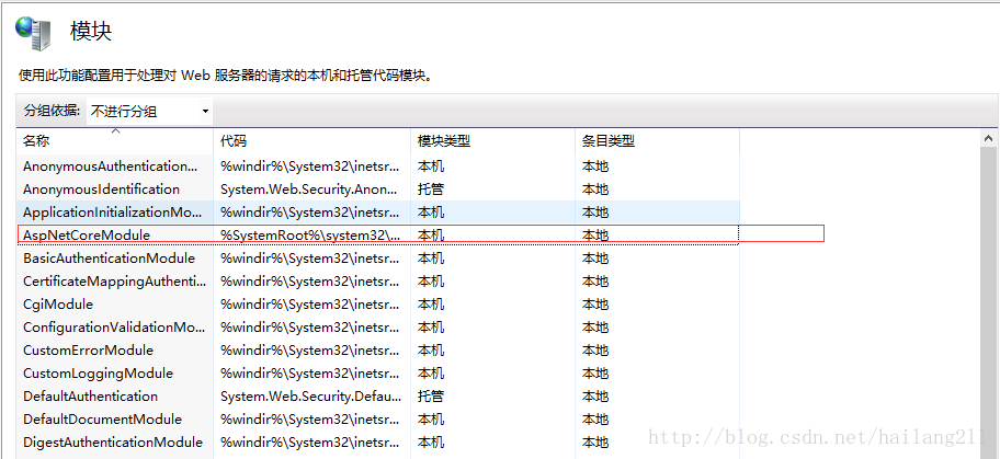部署之前要确保你的IIS上已经安装了AspNetCoreModule托管模块,如果没有的话,点击这里进行