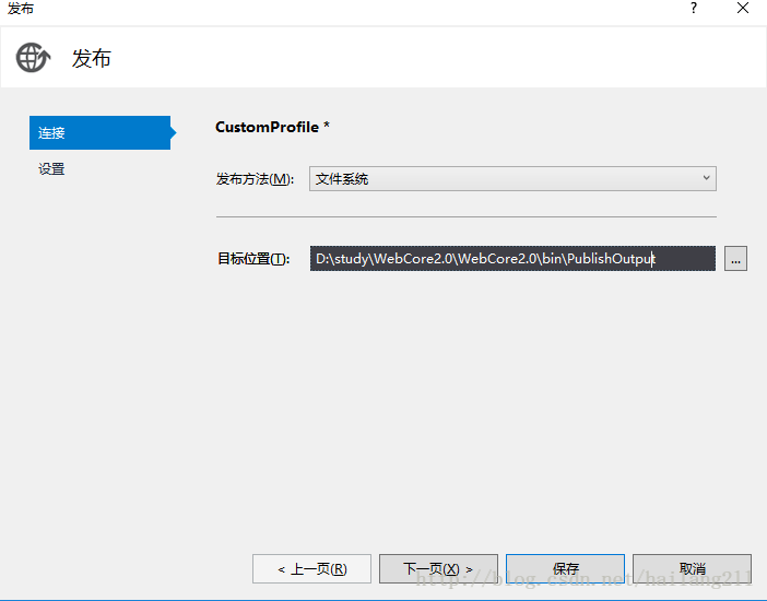 第三步:配置文件可以根据你线上、线下的环境进行选择,因为是基于.NET Core,所以目标框架为netcoreapp2.0,然后保存发布即可,如图: