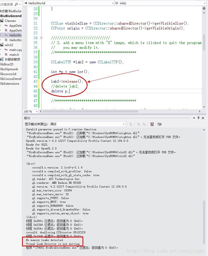 OK,意料之中,一切正常,VS 中 cocos2d-x的内存检测方法就介绍到这里,哈哈,下次发现问题再会,有啥问题可以给我留言。