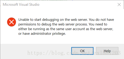 上段英文的意思是,无法启动调试。没有权限去启用其他网络服务器进程。