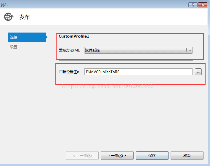 2 选择要发布的目标位置,简单说就是你想把发布生成的文件保存到哪里。本人在F盘建了个MVCPublishToIIS的文件夹。