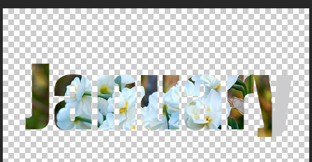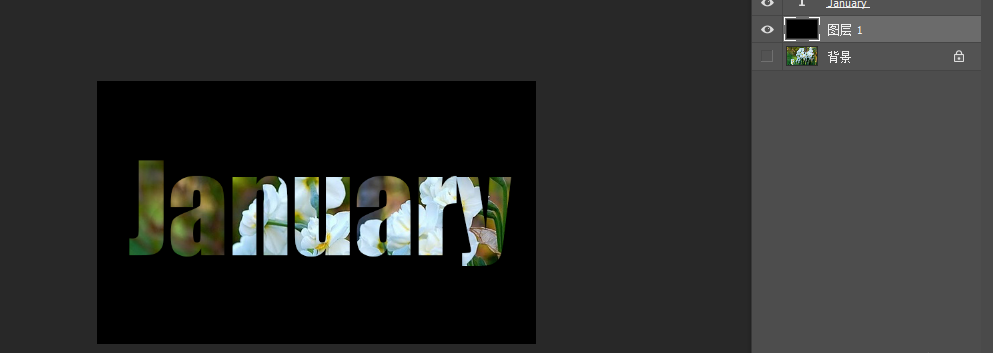 2、输入字体January,选中背景拷贝图层,放在字体图层上方,按住alt健不放,会出现向下的小箭头是点击鼠标左键,创建剪贴蒙板;