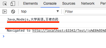 var array1 = ["Java", "Nodejs", "大学英语", "王者农药"]