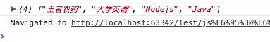 var array = ["Java", "Nodejs", "大学英语", "王者农药"]