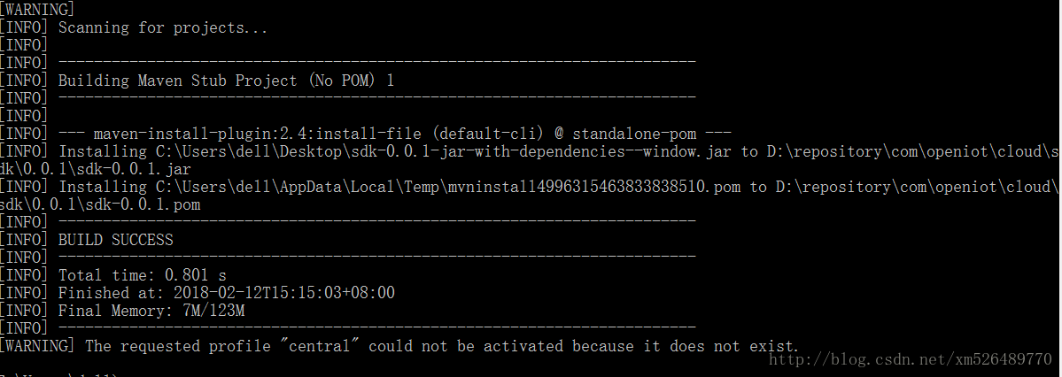 mvn install:install-file -DgroupId=com.openiot.cloud -DartifactId=sdk -Dversion=0.0.1 -Dpackaging=jar -Dfile=C:UsersdellDesktopsdk-0.0.1-jar-with-dependencies--window.jar