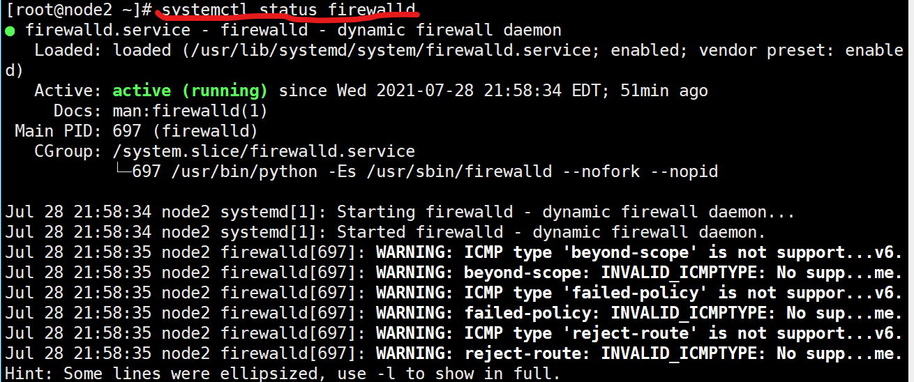 systemctl status firewalld #查看防火墙状态为关闭状态