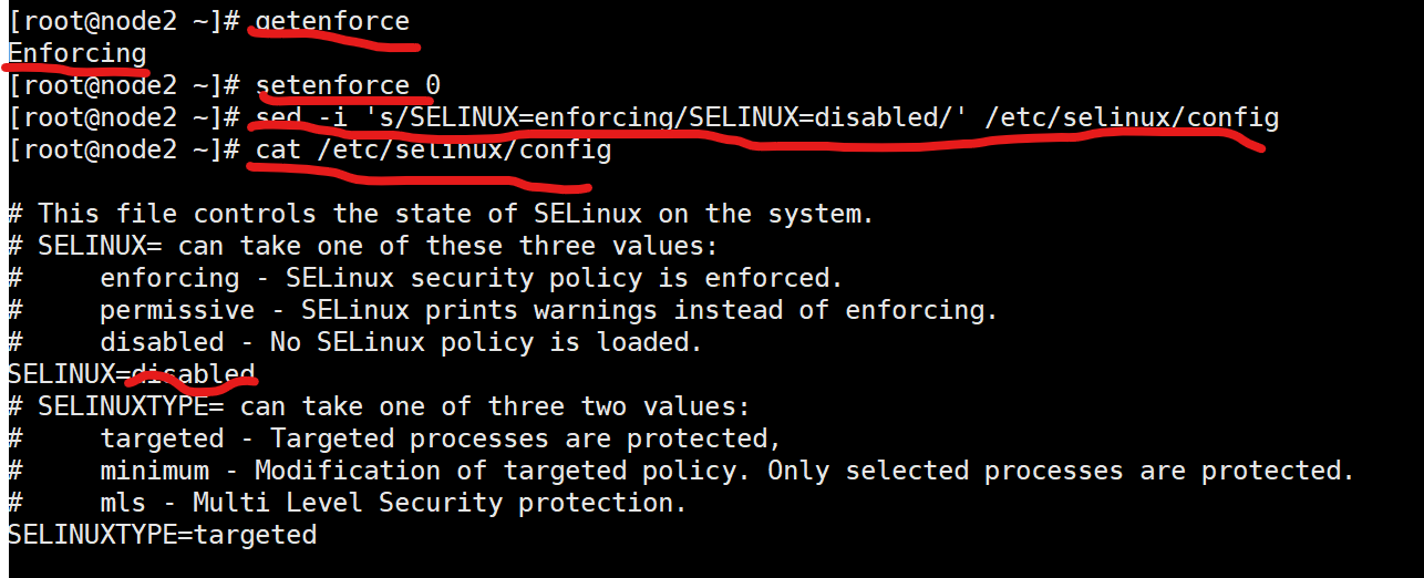 sed -i 's/SELINUX=enforcing/SELINUX=disabled/' /etc/selinux/config #永久关闭