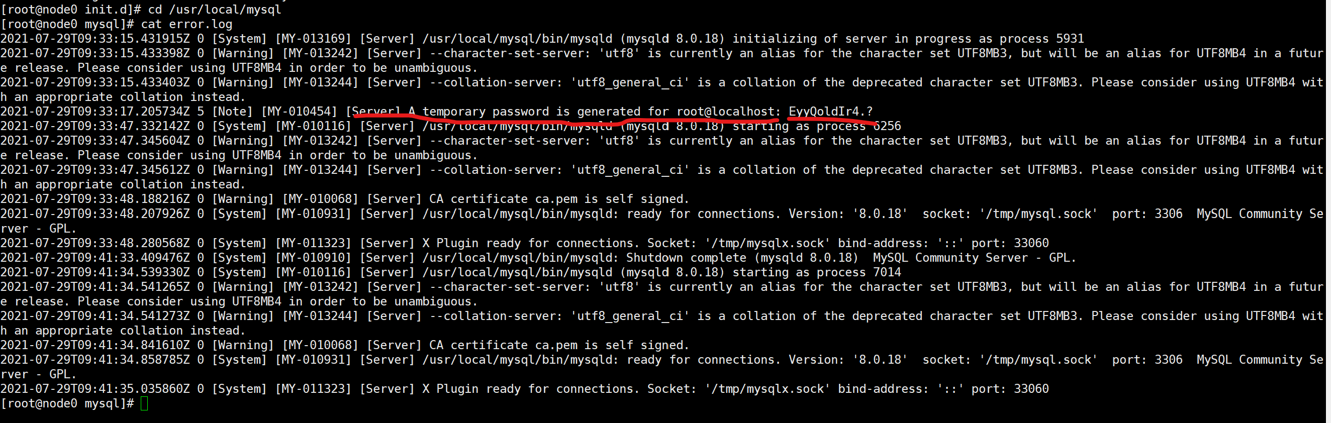 得到默认密码EyyQoldIr4.?使用默认密码登录,不能在init.d这个路径下输入如下命令,这样会把MySQL当成服务,具体的知识待学习补充,马克一下 Init.d的作用以及如何配置服务自启动(mysql踩坑集锦