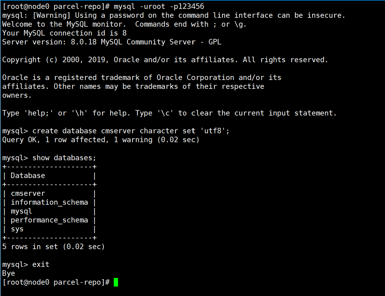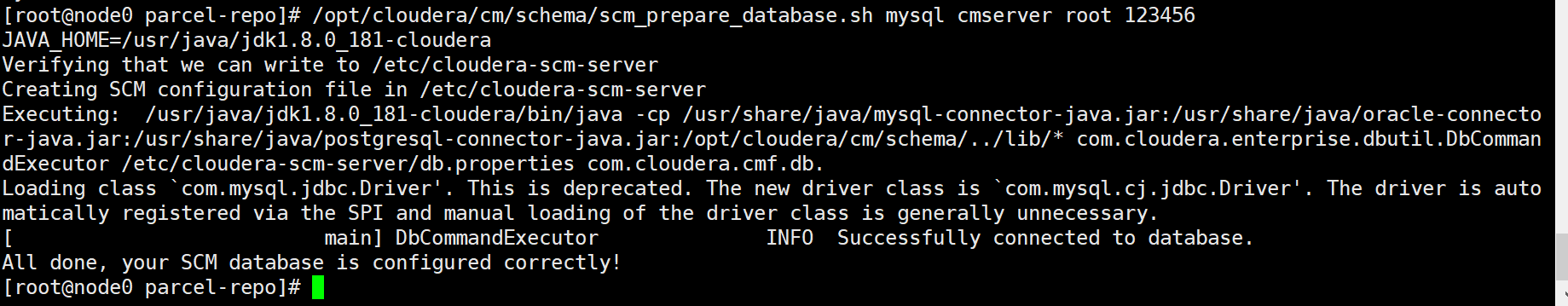 /opt/cloudera/cm/schema/scm_prepare_database.sh mysql cmserver root 123456