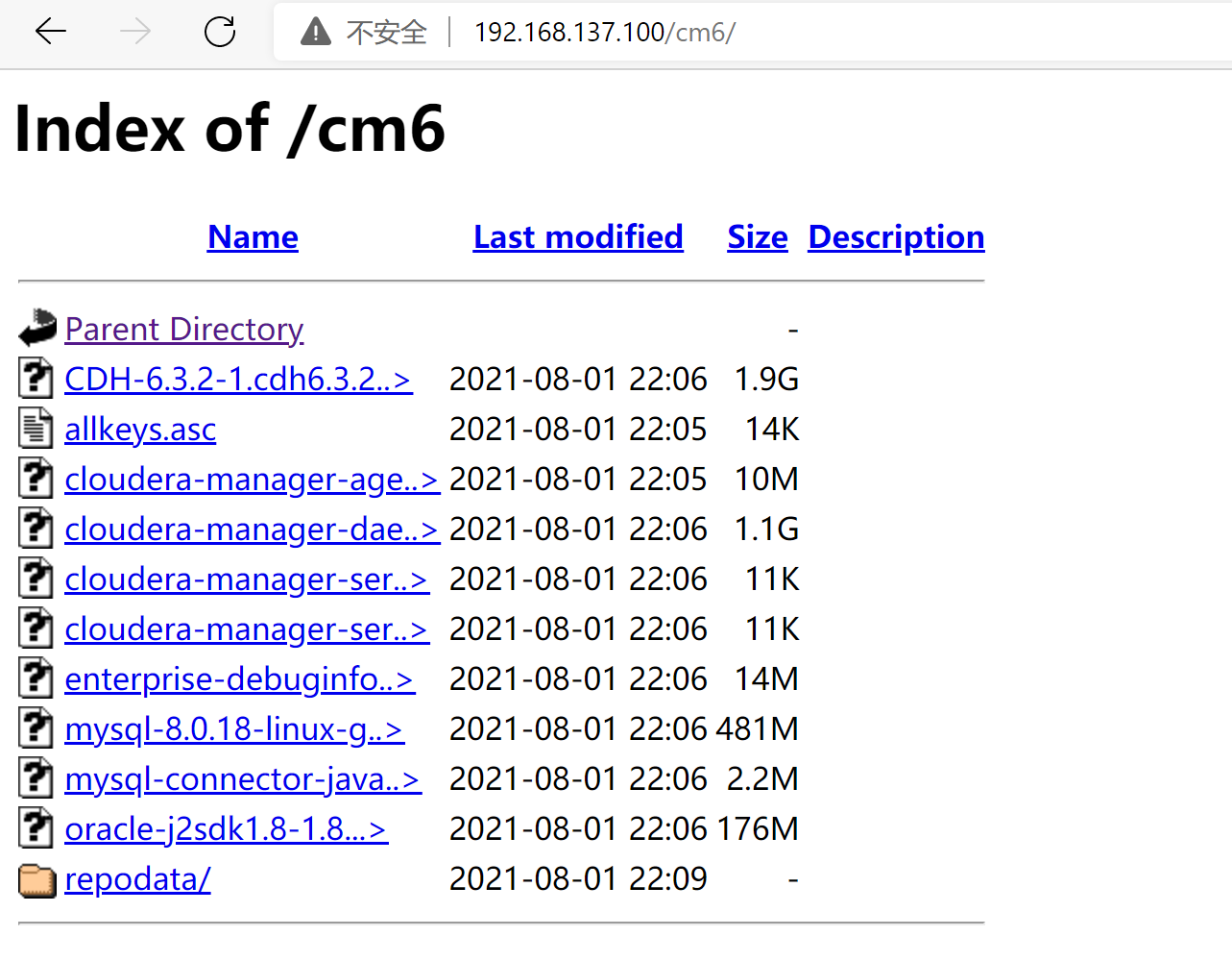 cloudera-manager-server安装完毕后,会自动创建/opt/cloudera/parcel-repo目录,将之前下载好的CDH安装包CDH-6.3.2-1.cdh6.3.2.p0.1605554-el7.parcel上传到/opt/cloudera/parcel-repo目录,上传完成后计算校验和