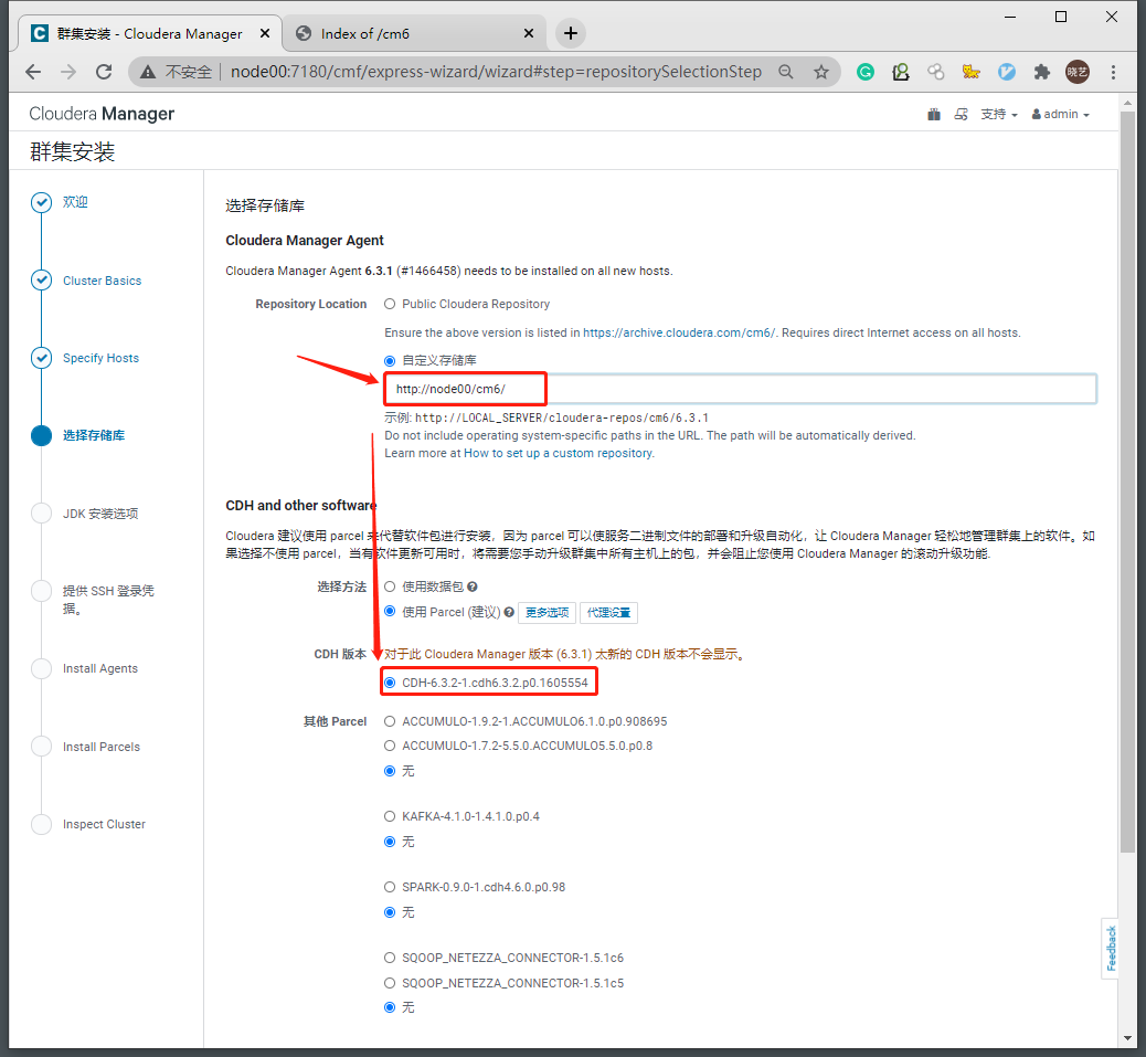 2.4 设置CM安装使用的本地yum源和使用的Parcel版本