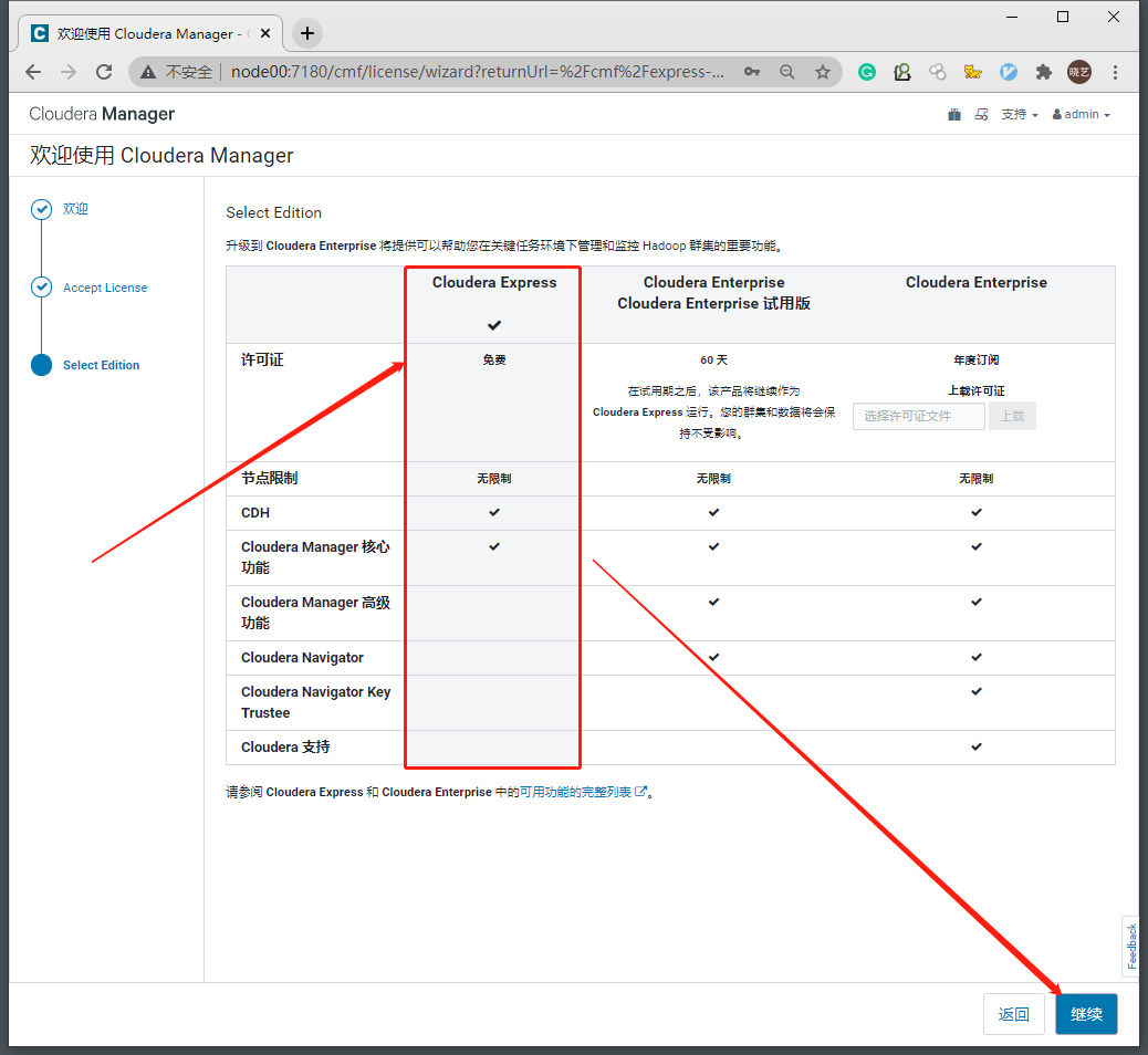 如需更大规模集群或Cloudera技术支持,可以考虑试用或购买企业版 -