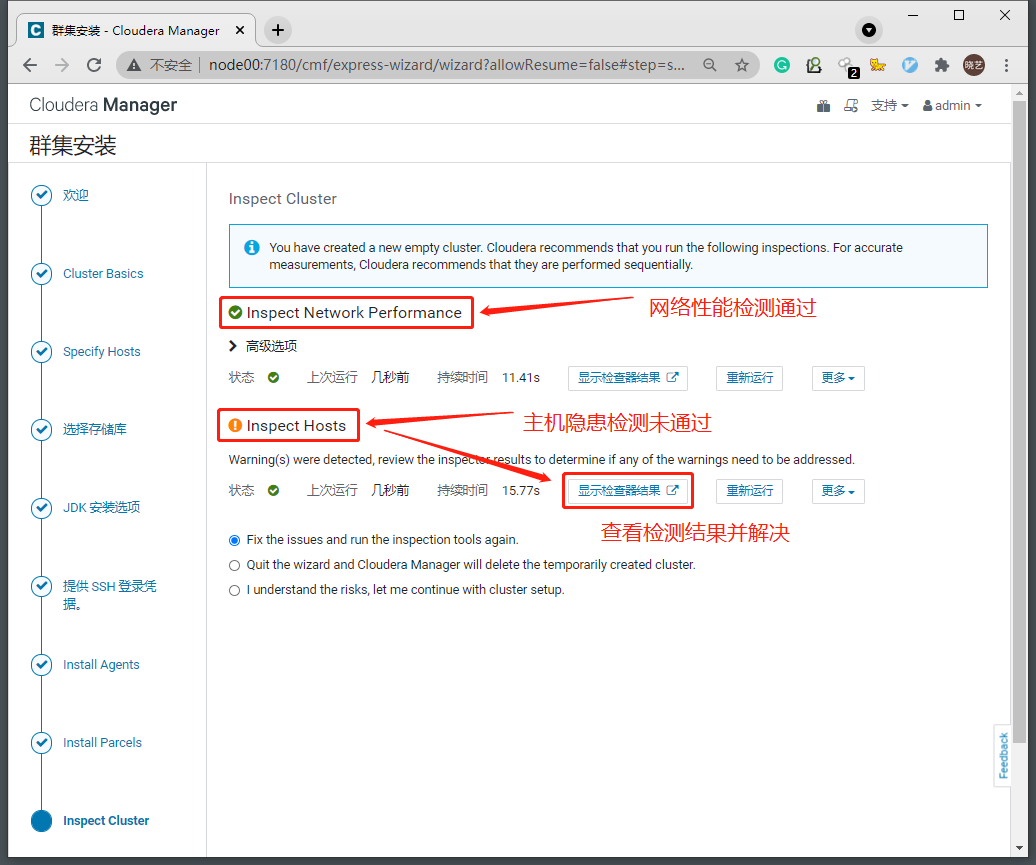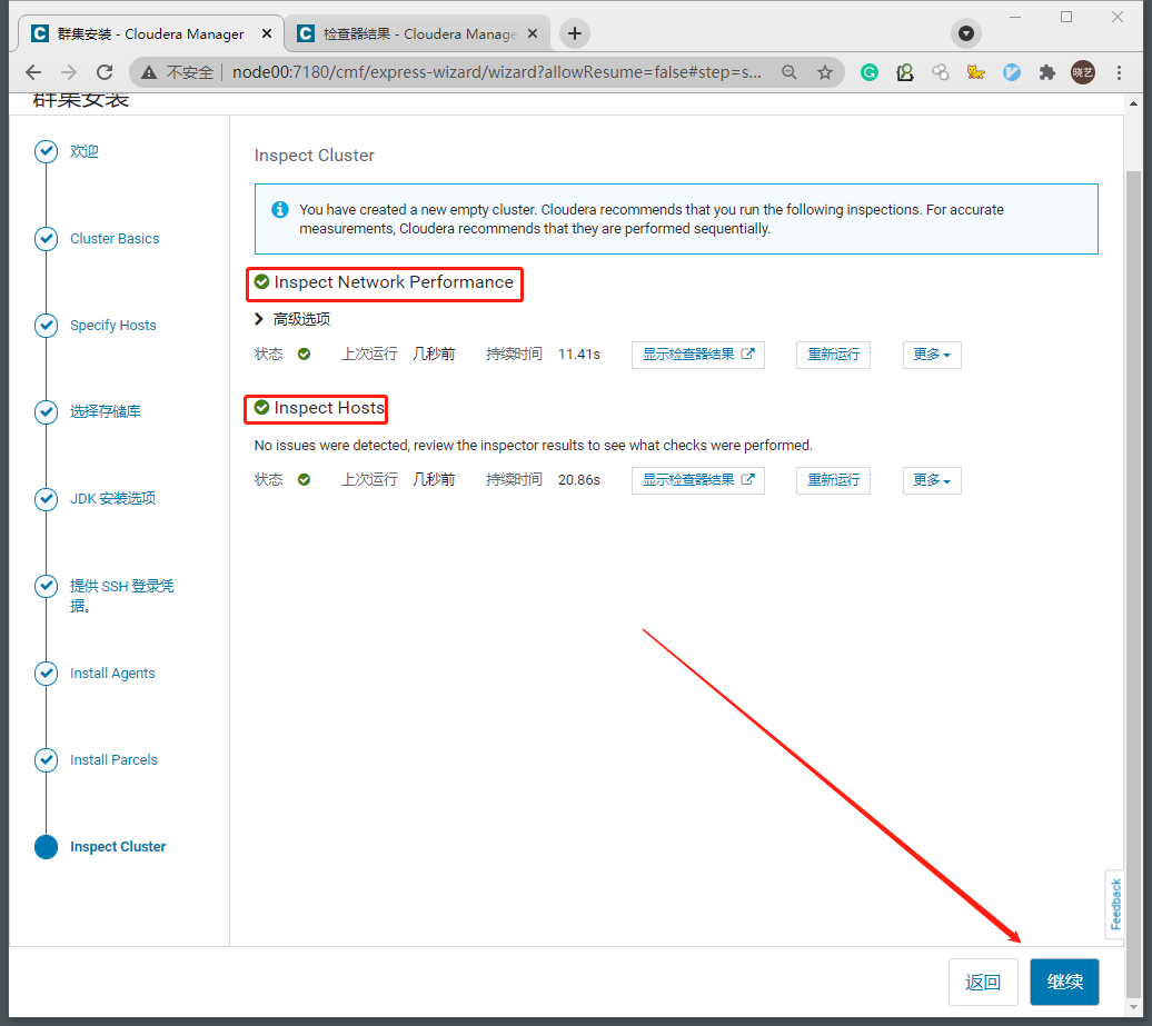 2.10 重新检测,通过检测,继续