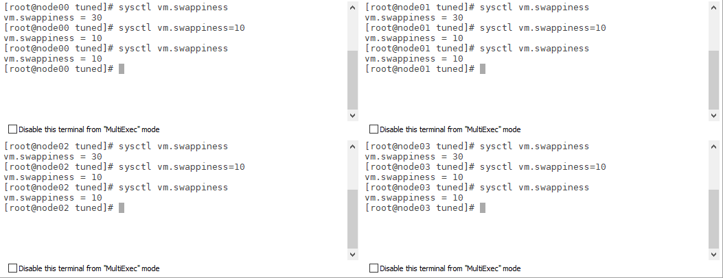 sed -i s/"vm.swappiness = 30"/"vm.swappiness = 10"/g /usr/lib/tuned/virtual-guest/tuned.conf