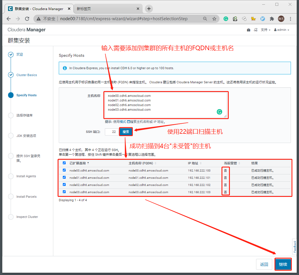 2.3 扫描需要添加到新集群的主机