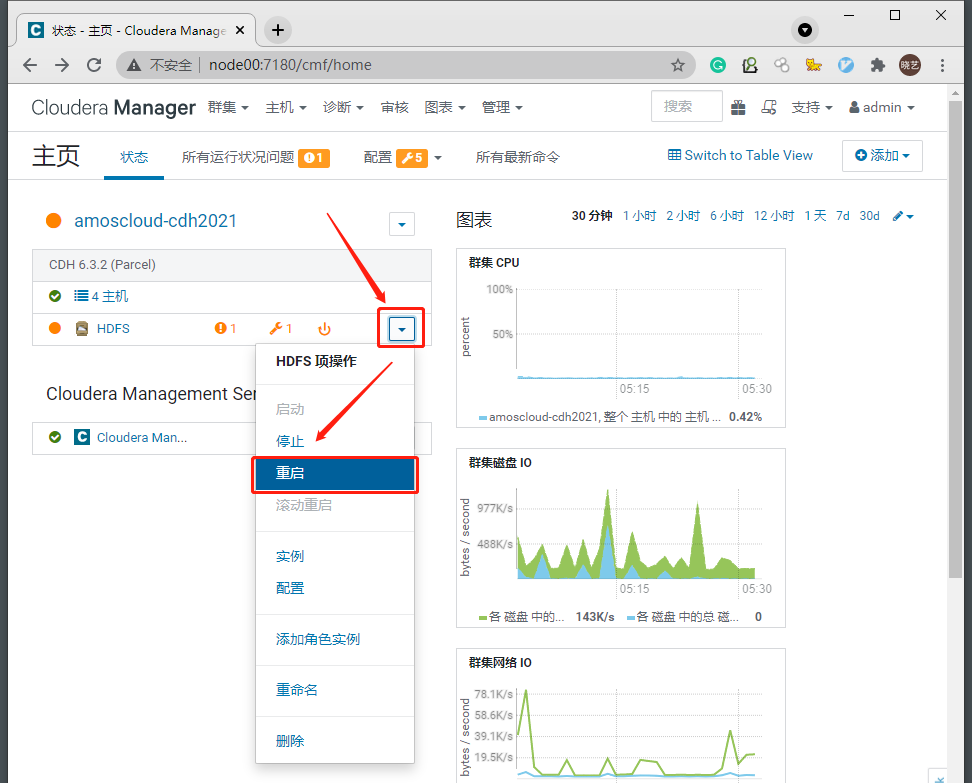 - 至此 CDH6.3.2的从零搭建、HDFS服务安装、基本调试全部完成