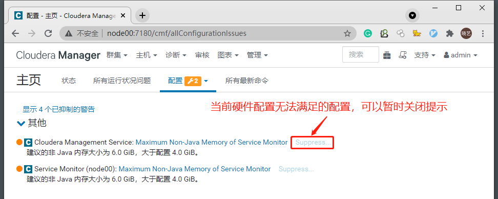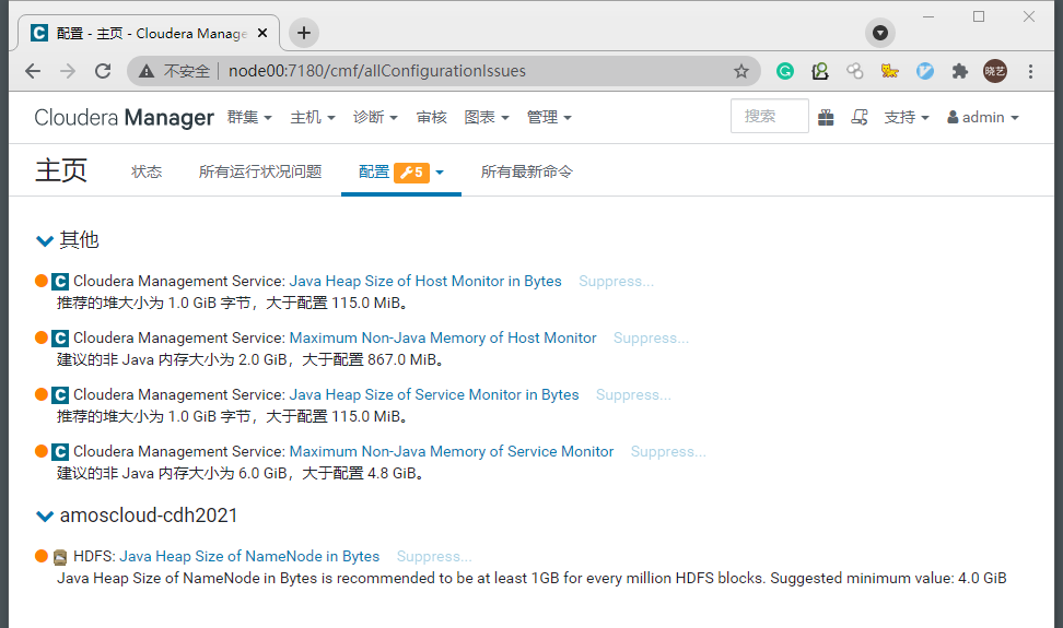 - 通常CDH提示的配置问题多数是内存参数问题